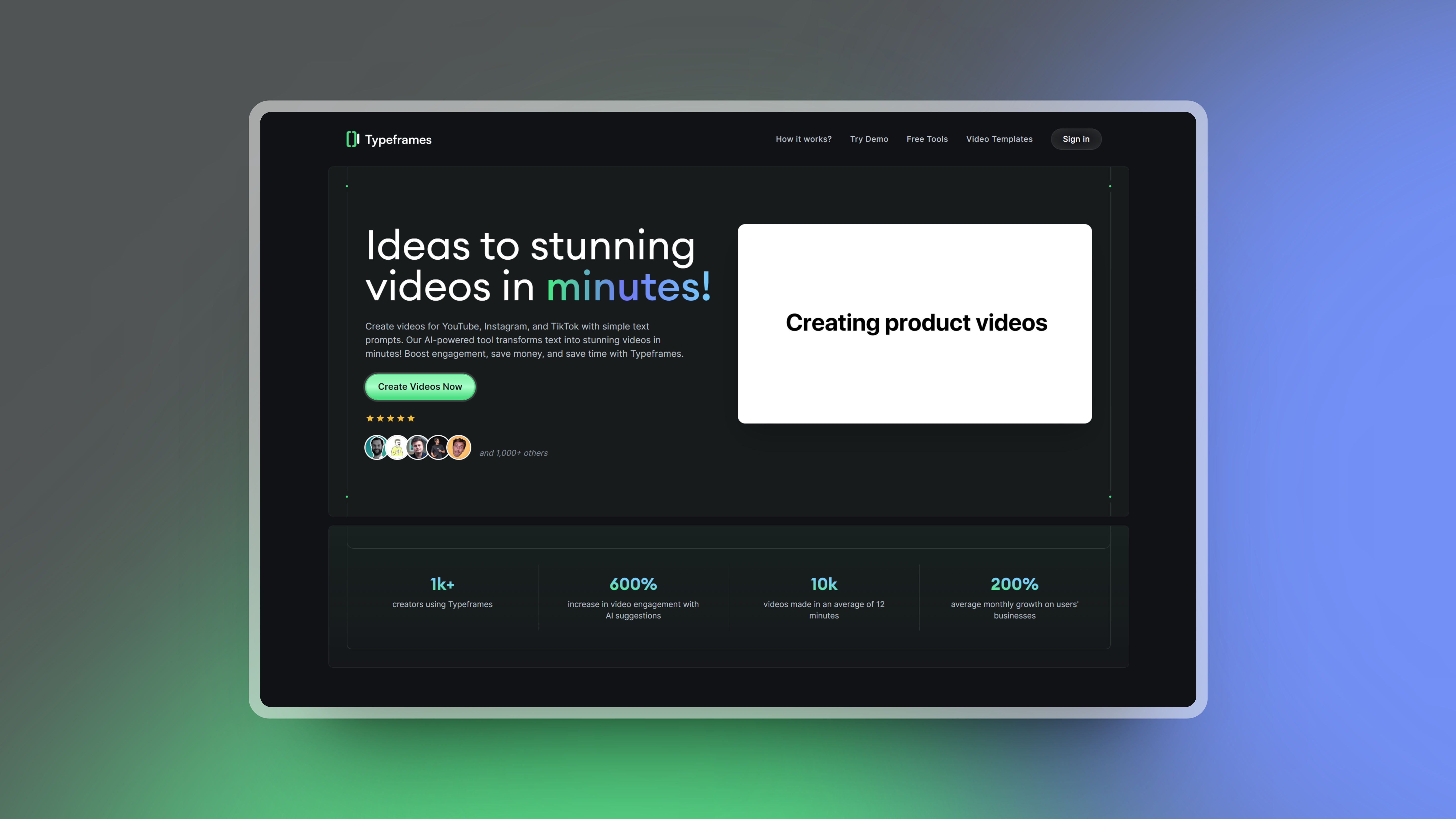 Developed the landing page for a product that helps create stunning videos from ideas in minutes.